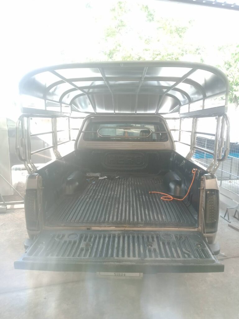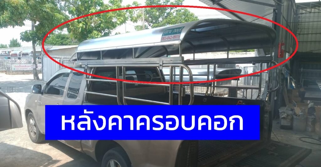กระบะตอนครึ่ง ติดหลังคาสวมคอกแบบหัวสั้นครอบคอก หลังคารถกระบะ หลังคาสวมคอกแบบหัวสั้น โครงหลังคาเป็นเหล็กป้องกันการเกิดสนิม