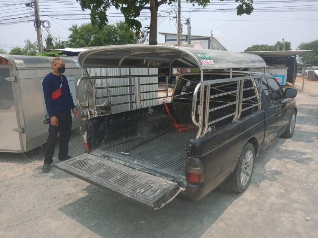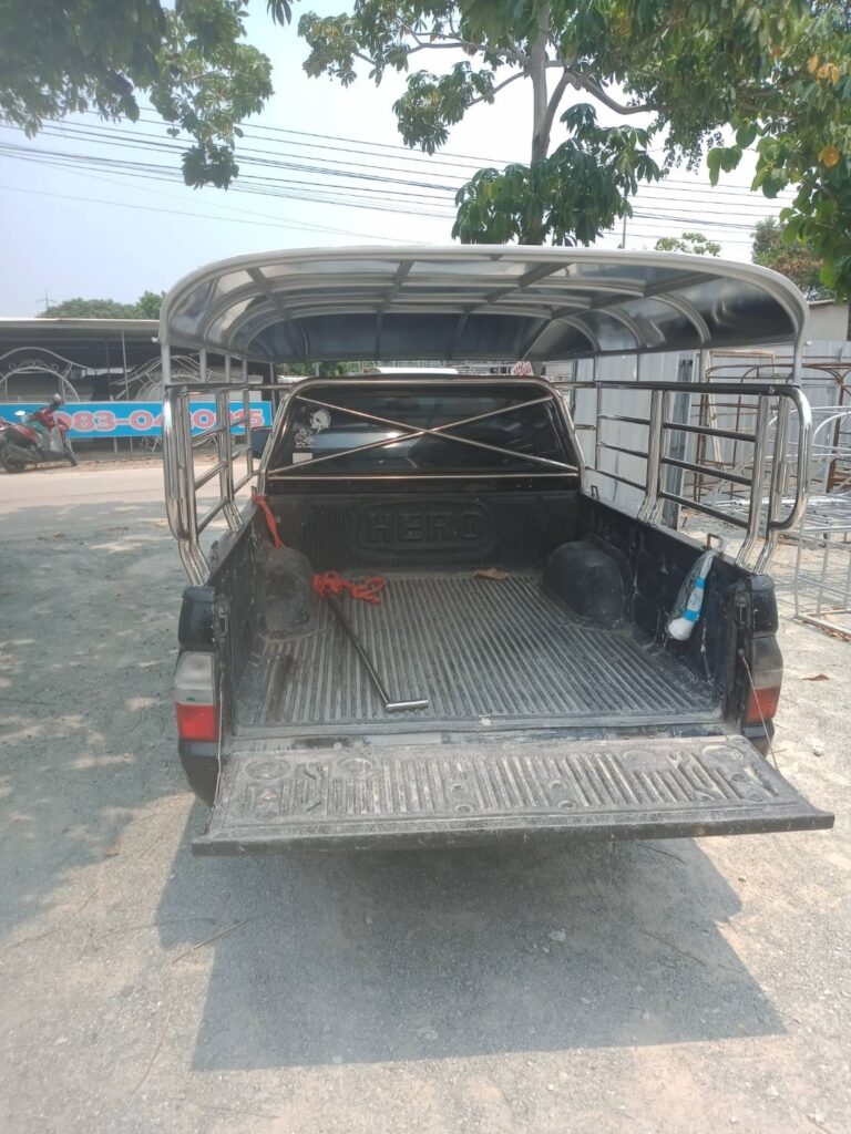 รถกระบะตอนครึ่ง ติดหลังคาสวมคอกแบบหัวสั้นครอบคอก หลังคารถกระบะอลูมิเนียม หลังคาสวมคอกแบบหัวสั้น โครงหลังคาเป็นเหล็กกันสนิม