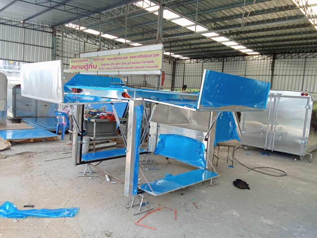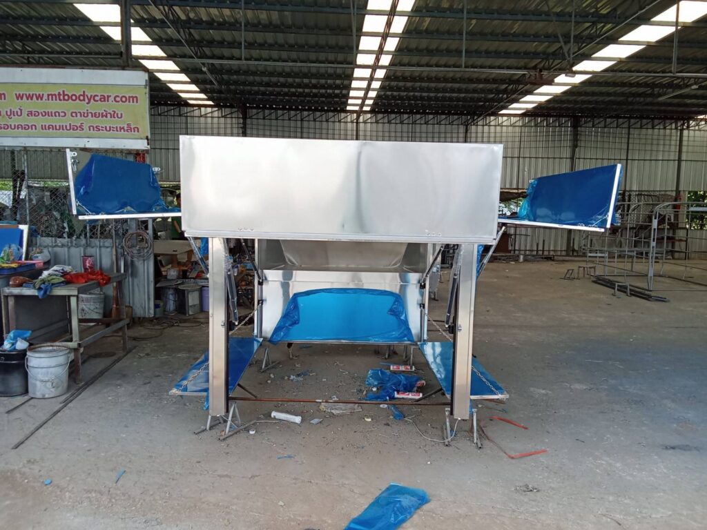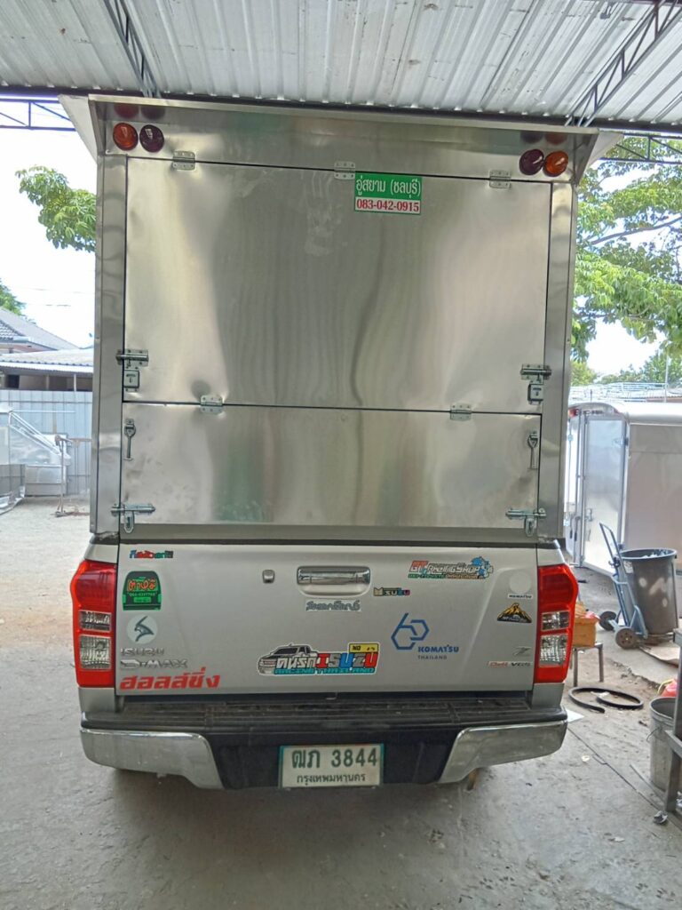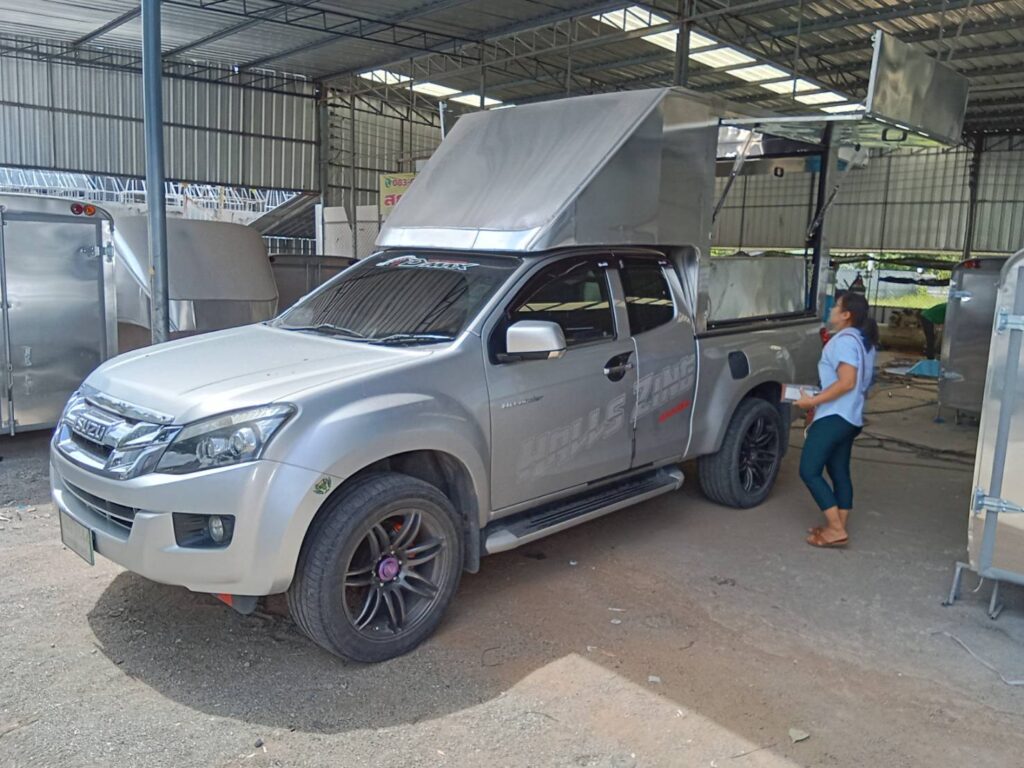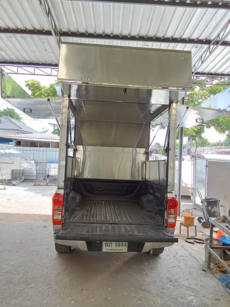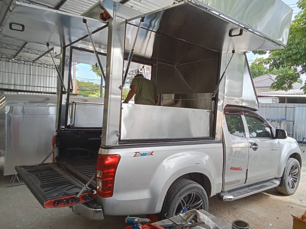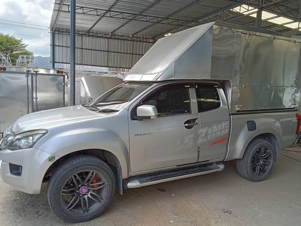 อีซูซุ ดีแมคซ์ ตอนครึ่ง หลังคาเปิดโล่ง พับปีกนกรอบด้าน+โช๊ค+บาร์ ความสูง 1.8 เมตรจากพื้นกระบะหลังคาขายของ หลังคาเปิดรอบด้าน หลังคารถฟู้ดทรัค สำหรับขายของ หลังคาอลูมิเนียม ป้องกันการเกิดสนิม