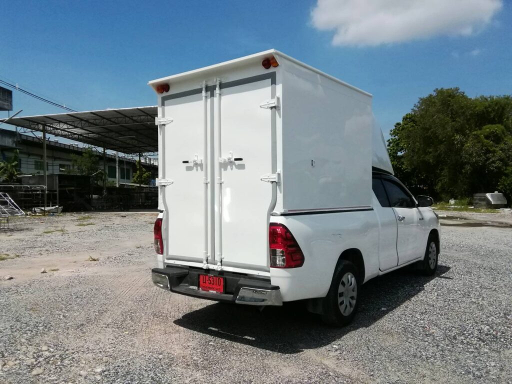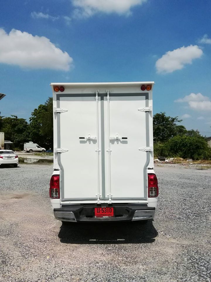 โตโยต้า ไฮลักซ์ รีโว่ ตอนครึ่ง ติดตั้งตู้แห้งครึ่งใบตู้แห้ง ตู้แห้งรถกระบะ ตู้แห้งครึ่งใบ งานผนังเบา ใช้ขนเนื้อสัตว์ ผักสด สิ่งของเครื่องใช้
